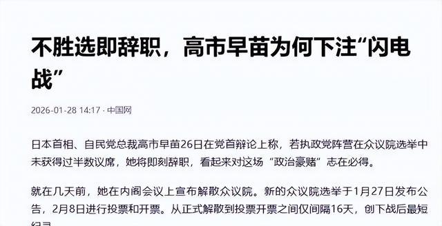 她为什么这样急?证据《逐日新闻》的数据,高市内阁提拔率衔接跌了10个百分点,强迫撑在57%。自民党"黑金政事"丑闻还在发酵,日元不竭走软,物价涨个没完,老匹夫日子越来越紧巴。拖到国会质询轮替上阵,这些问题只会越放越大。是以她选了"闪电战"——趁提拔率还莫得跌穿底线,赶快把选举打完。